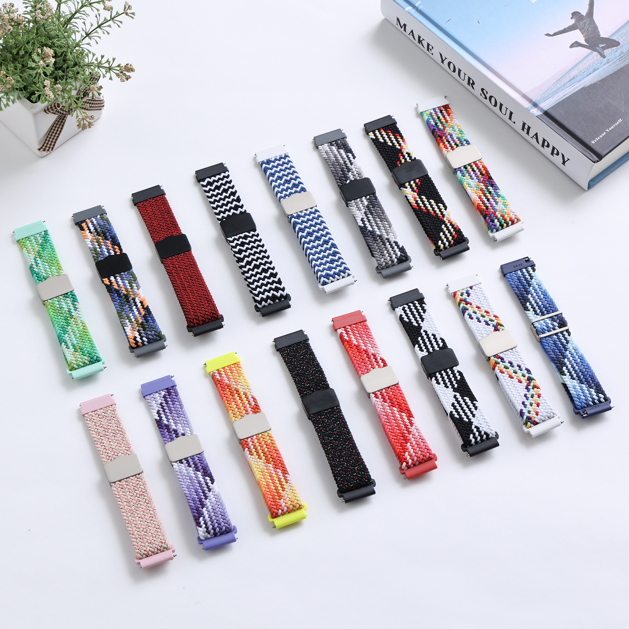 20mm 22mm 时尚彩色尼龙编织表带,通用表带,带强力磁力扣,适用于儿童 GPS 跟踪器手表和老年 GPS 跟踪器手表,易于更换,带快速释放弹簧杆,皮肤触感舒适 NS05