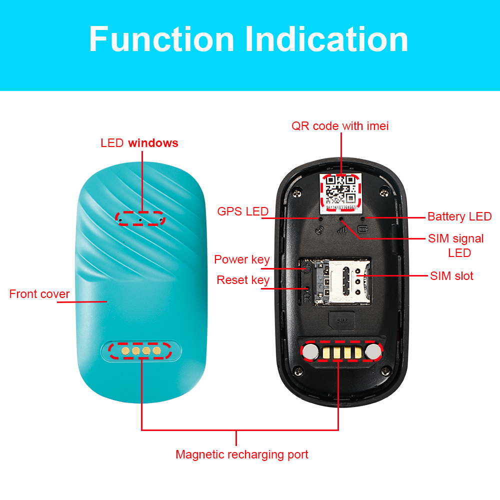 | 功能 | 实时GPS/Wifi/LBS 定位、强磁、录音笔、围栏报警提醒、历史轨迹、省电 |