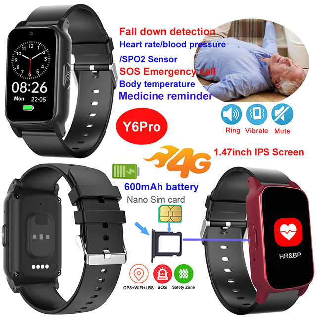 Y6Pro智能超薄安全手表旨在为老年人和独身工作者提供全面的安全和健康监测。具有 SOS 警报、跌倒救护车警报、实时跟踪和双向呼叫,只需一个按钮即可获得帮助,还具有实时健康(心率、血压、血氧饱和度、体温)监测。