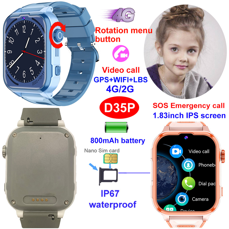 4G 智能 GPS 手表跟踪器 D35P以其独特的 旋转菜单按钮 脱颖而出,这是一种适合儿童的设计,可简化导航,同时提供顶级安全功能。这款手表专为忙碌的家庭打造,提供 GPS+LBS+WiFi 定位, 4G 视频通话, IP67 防水 保护,并配备 800mAh 电池。与免费的 Beesure GPS 应用程序 和 AWS 云服务器配合使用,D35P 可以让家长轻松跟踪、交流和管理设置,同时孩子们可以享受直观的使用和有趣的附加功能,例如 数学游戏 和 计步器.