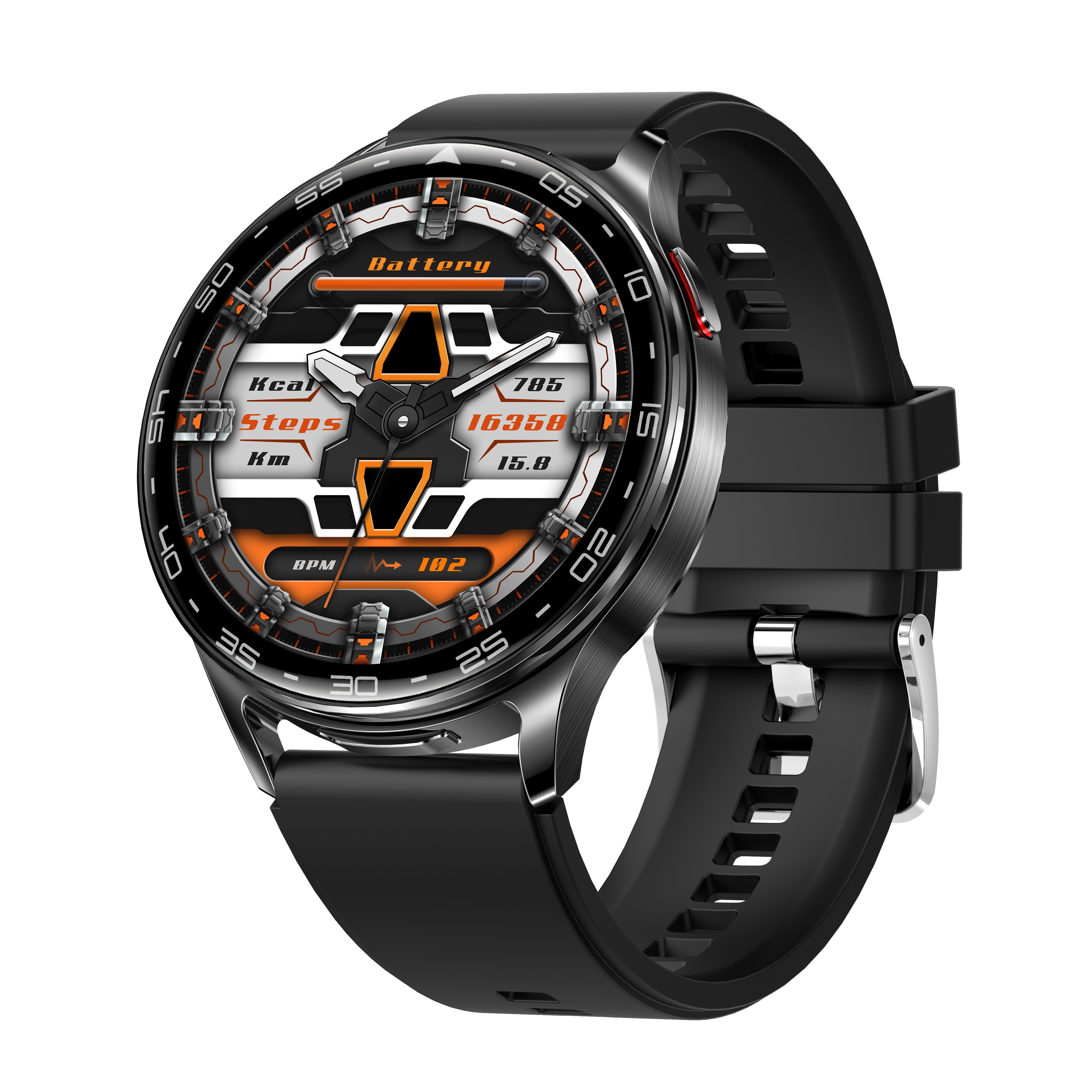 | 推荐产品卖点(智能手表) | 商务外观,金属工艺,TPU高档高服运动风格表带,全圈全触控+机械按键操作双重操作,编码器旋钮,3套UI风格,BLE5.0版本,300mAH固态容量大电池,超强续航待机25天以上。外部播放长达 10 小时的强音(最大音量)。智能手环具有24小时精准检测心率、血压监测、血氧监测、运动监测、里程、卡路里消耗、消息提醒、睡眠记录、消息提醒、摇控拍照、大量免费表盘下载和DIY表盘制作。 |