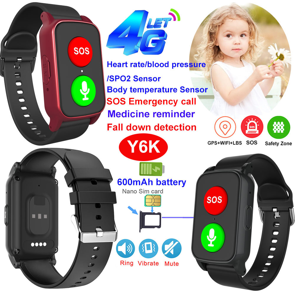 4G/3G/2G 网络兼容 IP67 防水 GPS 追踪器手环,具有 跌倒检测 和心率/血压/血氧/体温 监测 Y6K